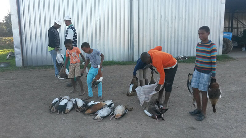 Goose shooting is done on pastures and field from blinds. Decoys are used to attract the geese. Lowering the number of geese assist the local farmers by limiting crop damage caused by geese. The bird carcasses are donated to feeding schemes providing much needed food to the under privileged local communities.