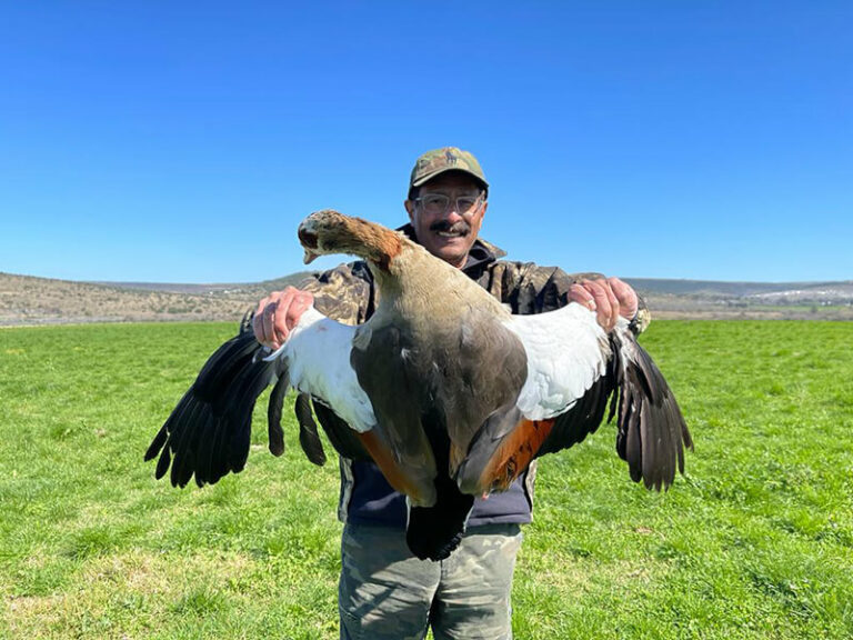 Our main shoot is decoyed geese on pastures. Main species being Egyptian Geese, other species include Cape Shell Duck, Spurwing Geese, Pigeons, Crows and more.